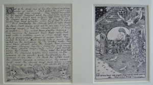 The handwritten poem is illustrated by three angels in the style of the pre-Raphaelite artist, Gabriel Rossetti. They were a gift for Nash’s first love, Sybil Fountain, for Christmas 1909. At the time, Nash was 20 years old and living in Iver Heath.