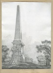 Keepers Corner – Stowe, Obelisk to the memory of General Wolfe by John Claude Nattes (1765-1839)