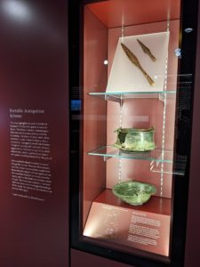 As well as the main display PAS have their own display case, which was purchased with the help of Dorset Foundation. This case is used to highlight finds found in Buckinghamshire and recorded onto the PAS database. It currently has the finds from the original rescue excavation of the Marlow Warlord which were generously donated by the finders. This is a changing display, and we are currently planning our Autumn display in this case.