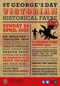Step back in time at Aylesbury Town Council’s St George’s Day Victorian Historical Fayre and Parade on Sunday 24 April. We’re excited to bring you this entirely FREE event in a brand-new format. There is LOTS to see and do…