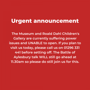 The Museum and Roald Dahl Children’s Gallery are currently suffering power issues and UNABLE to open. If you plan to visit us today, please call us on 01296 331 441 before setting off. The Battle of Aylesbury talk WILL still go ahead at 11.30am so please do still join us for this.